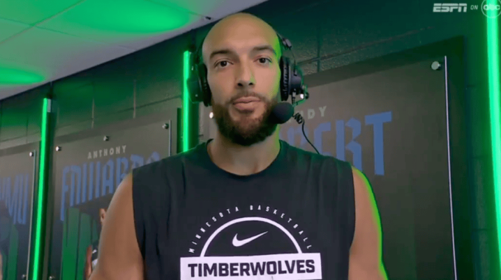 赛后,丛林狼中锋鲁迪-戈贝尔承袭采访谈起了此次突破。